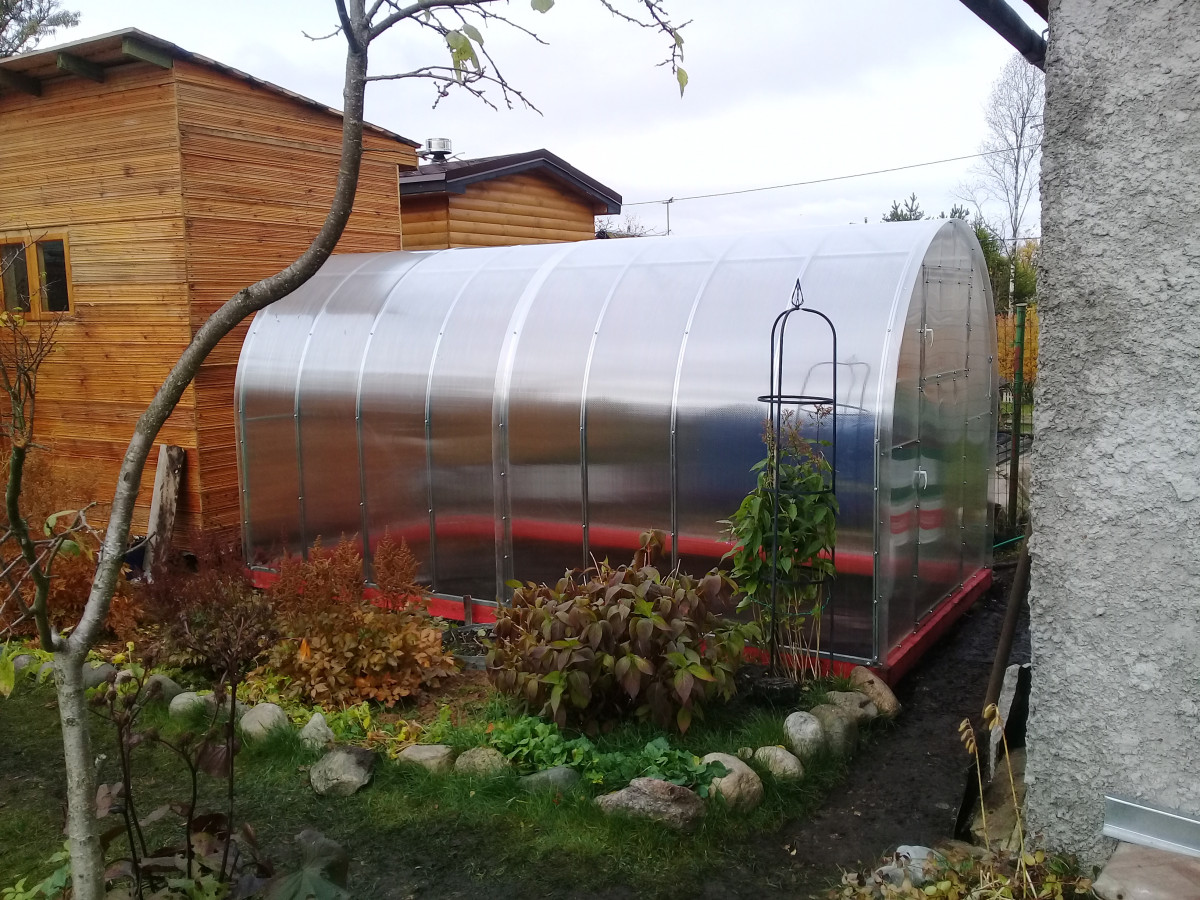 • практически прямые боковые стороны теплицы позволяют использовать пространство по максимуму и выращивать культуры, плотно прилегающие к стенкам