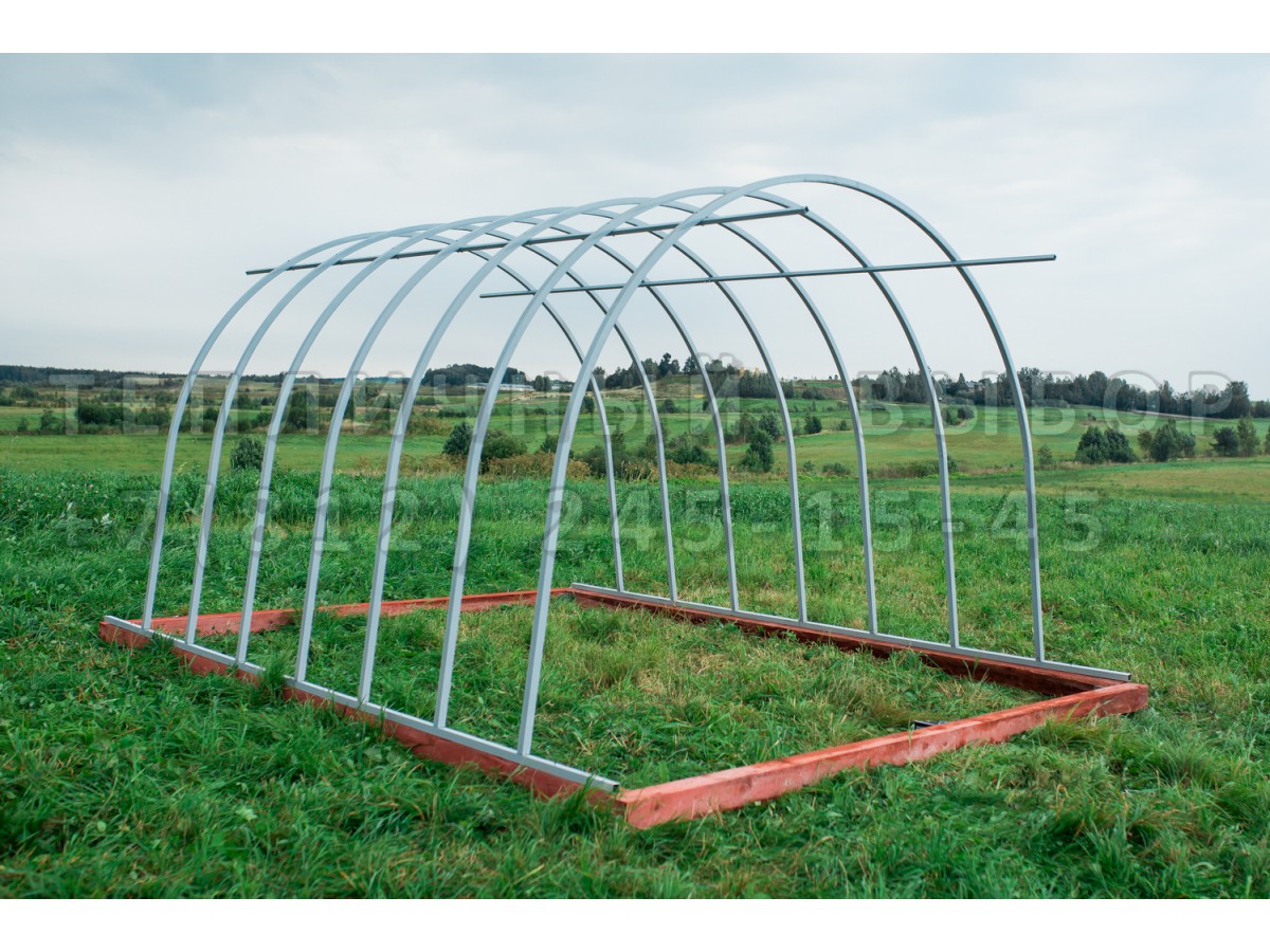 В разобранном виде теплица состоит из отдельных сварных рам в виде дуги.