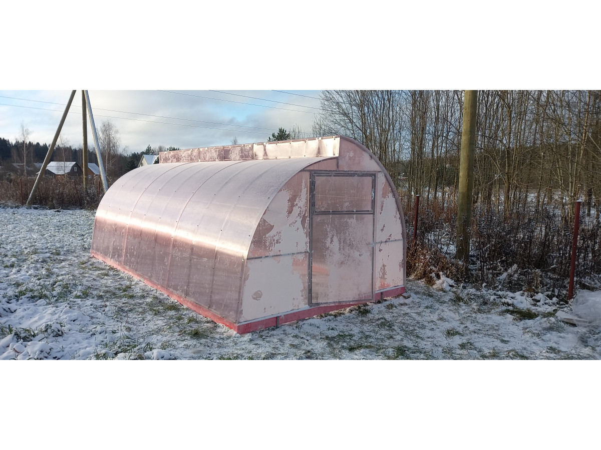 • поликарбонат толщиной 4 мм (в транспортном состоянии свёрнутые в рулон листы имеют диаметр до 80 см и длину 2.1 м);