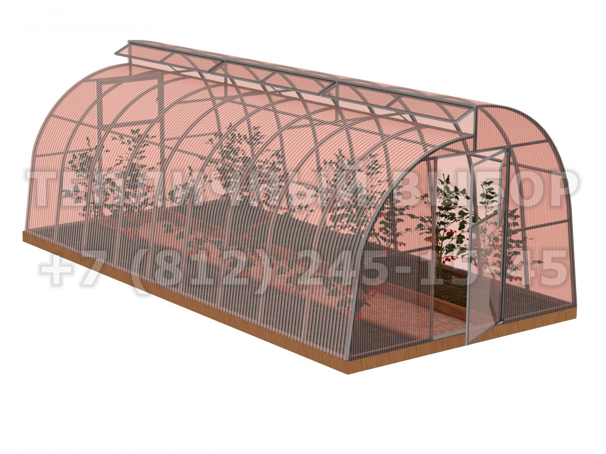 • длина фрамуги соответствует длине теплицы, высота 22 см, открывается изнутри и фиксируется в открытом состоянии с помощью ограничителя;