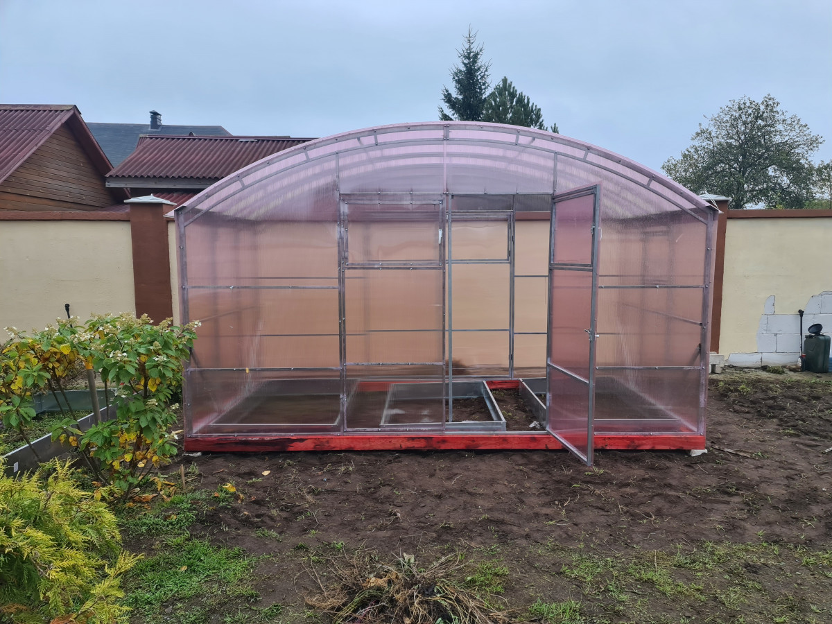 В разобранном виде теплица состоит из отдельных сварных рам в виде дуги. Транспортные габариты 5260х2500 мм. Для перевозки необходим микроавтобус или автоприцеп.