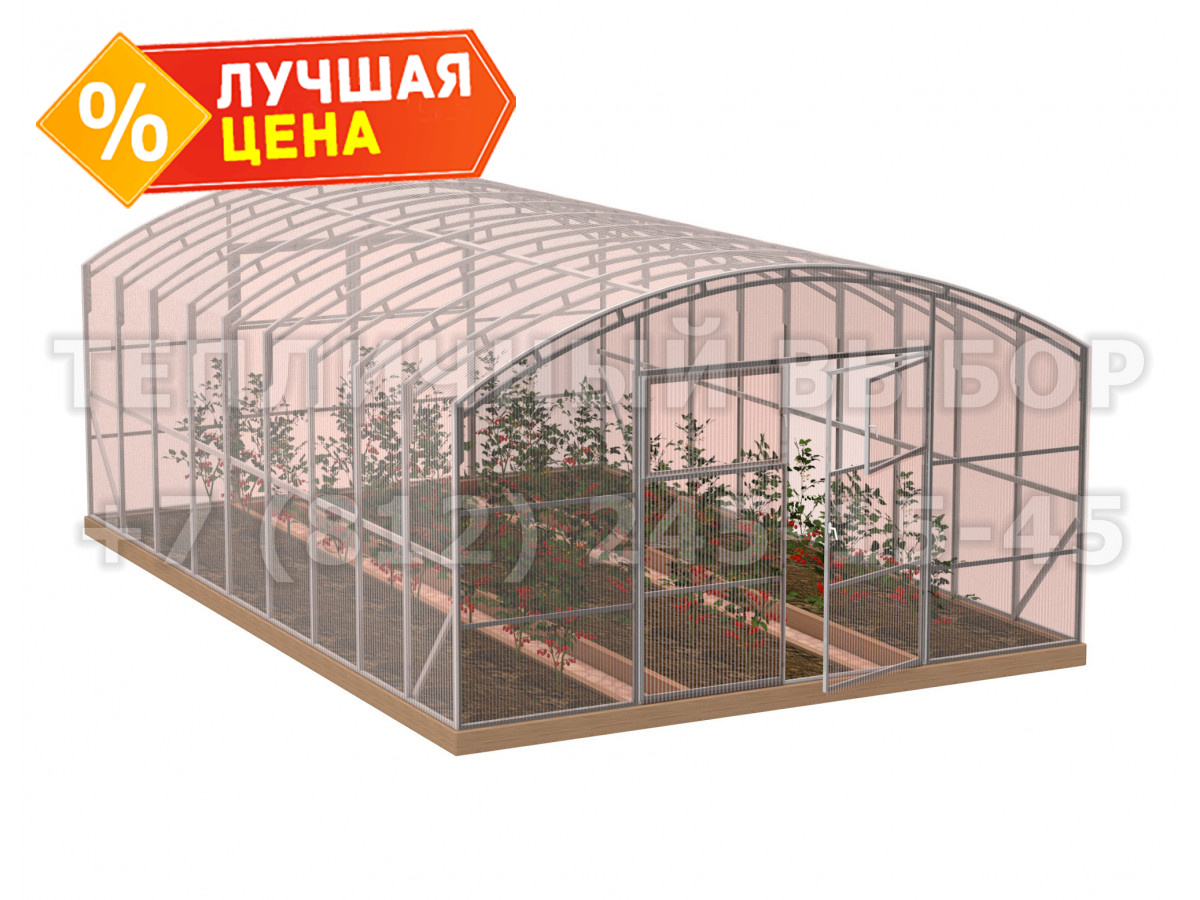 Теплица из поликарбоната-фито Усиленная Прямостенная 5х6 h=2.4 м профиль 20х40 мм