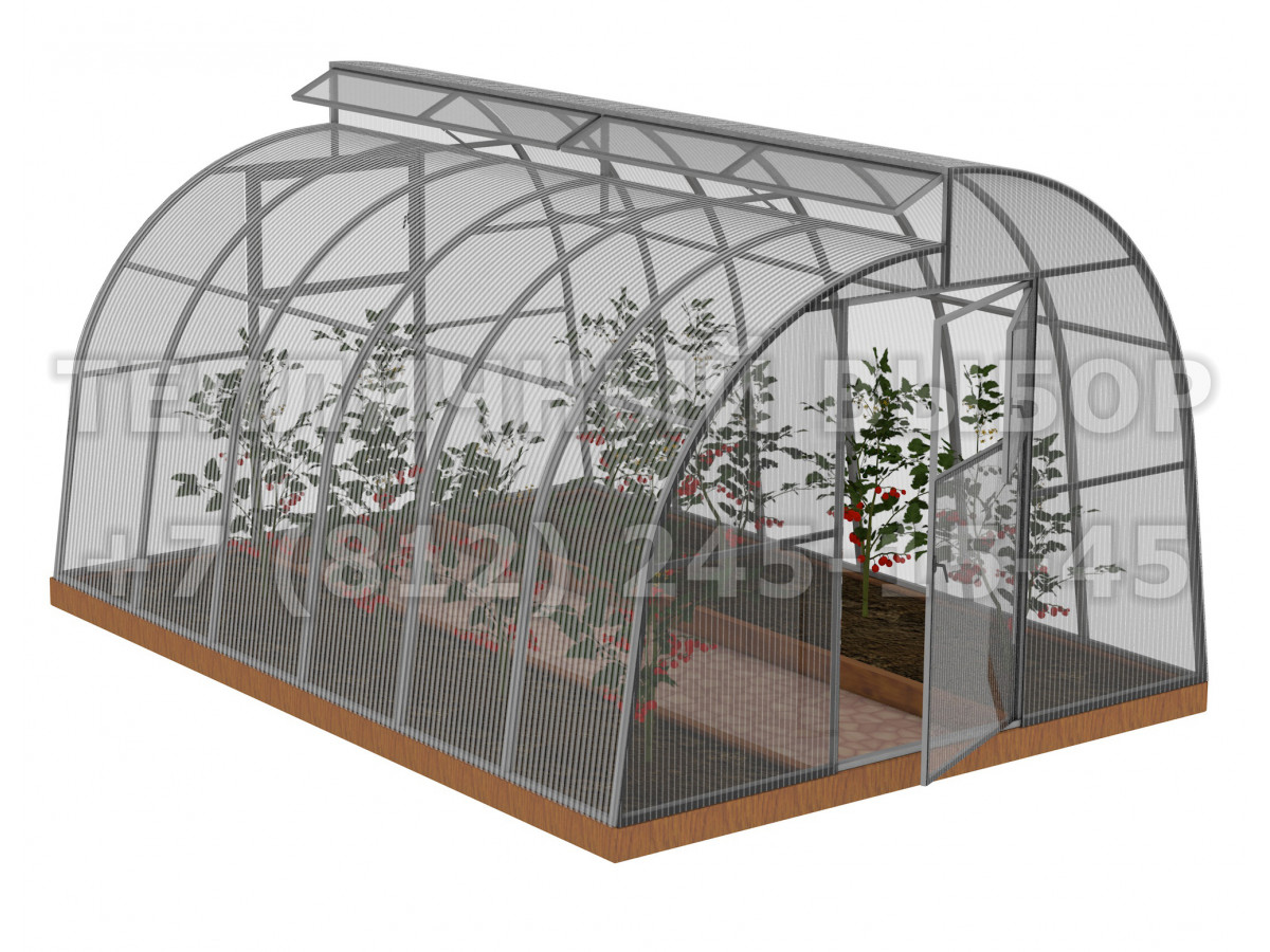 - длина фрамуги соответствует длине теплицы, высота 22 см, открывается изнутри и фиксируется в открытом состоянии с помощью ограничителя;