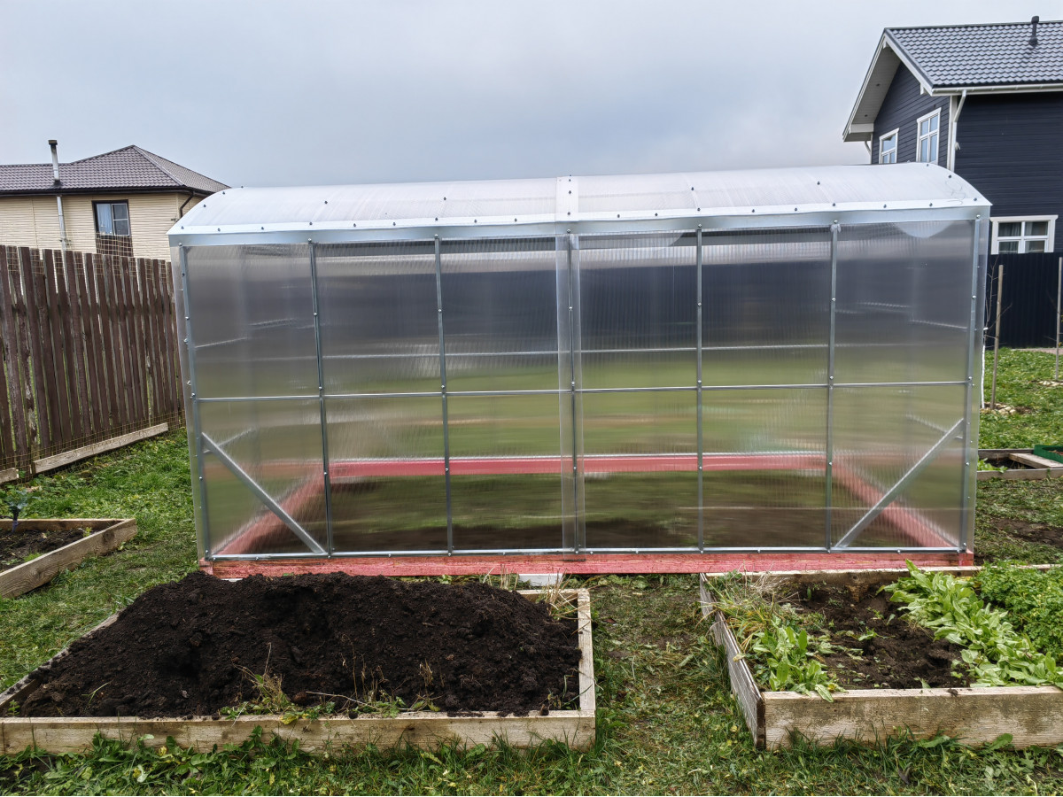 Теплица из поликарбоната Усиленная Прямостенная 2,5х10 h=2.1 м профиль 20х40 мм
