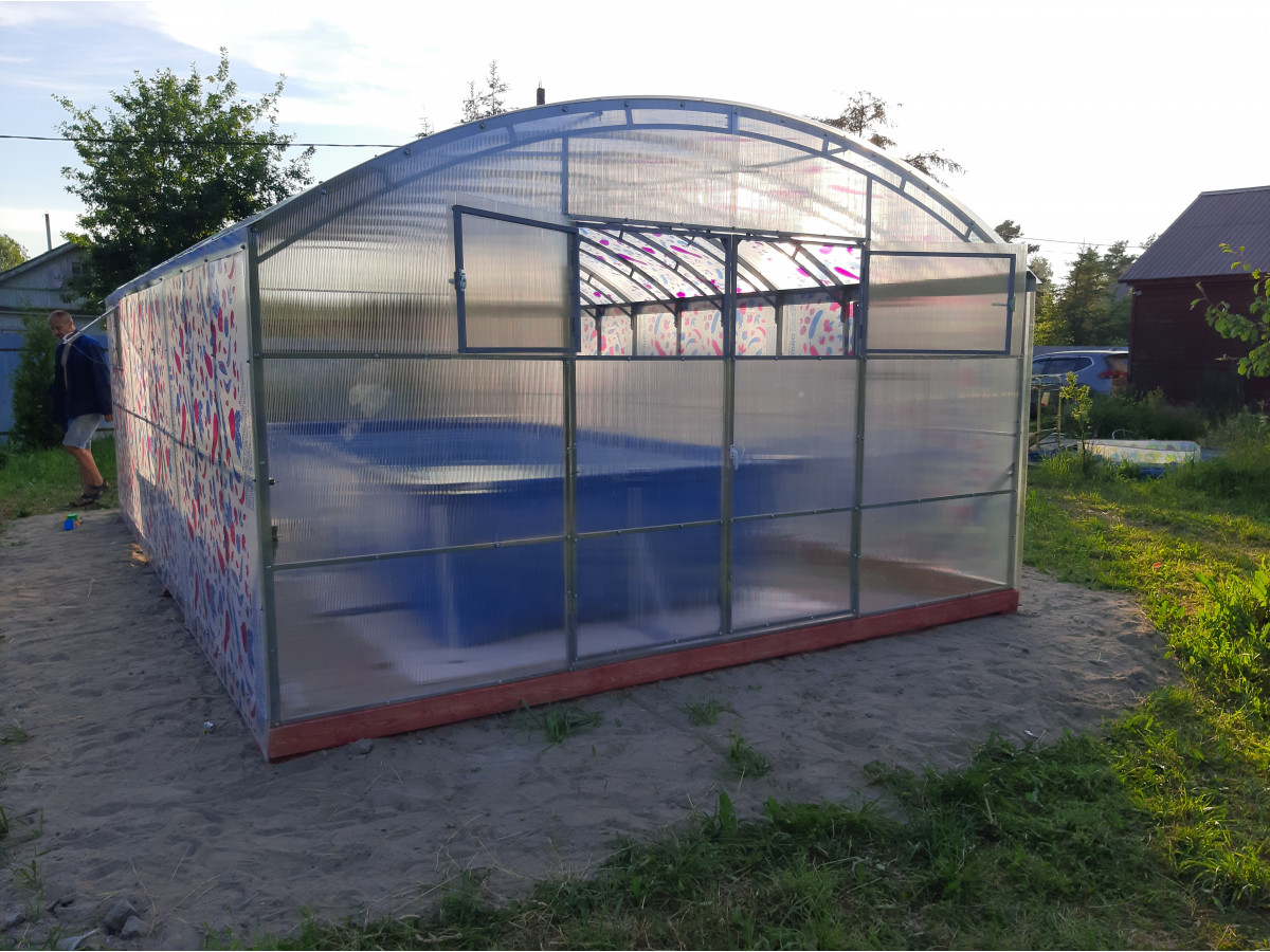 • широкая 4 м, ширина теплицы позволяет организовать 3 широкие полноценные грядки с комфортными проходами между ними;
