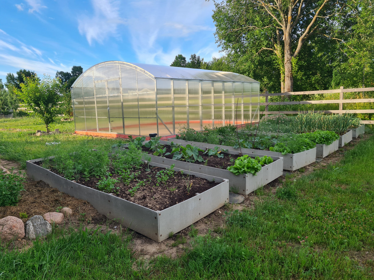 • широкая, ширина теплицы 5 метров позволяет организовать 4 широкие полноценные грядки с комфортными проходами между ними;